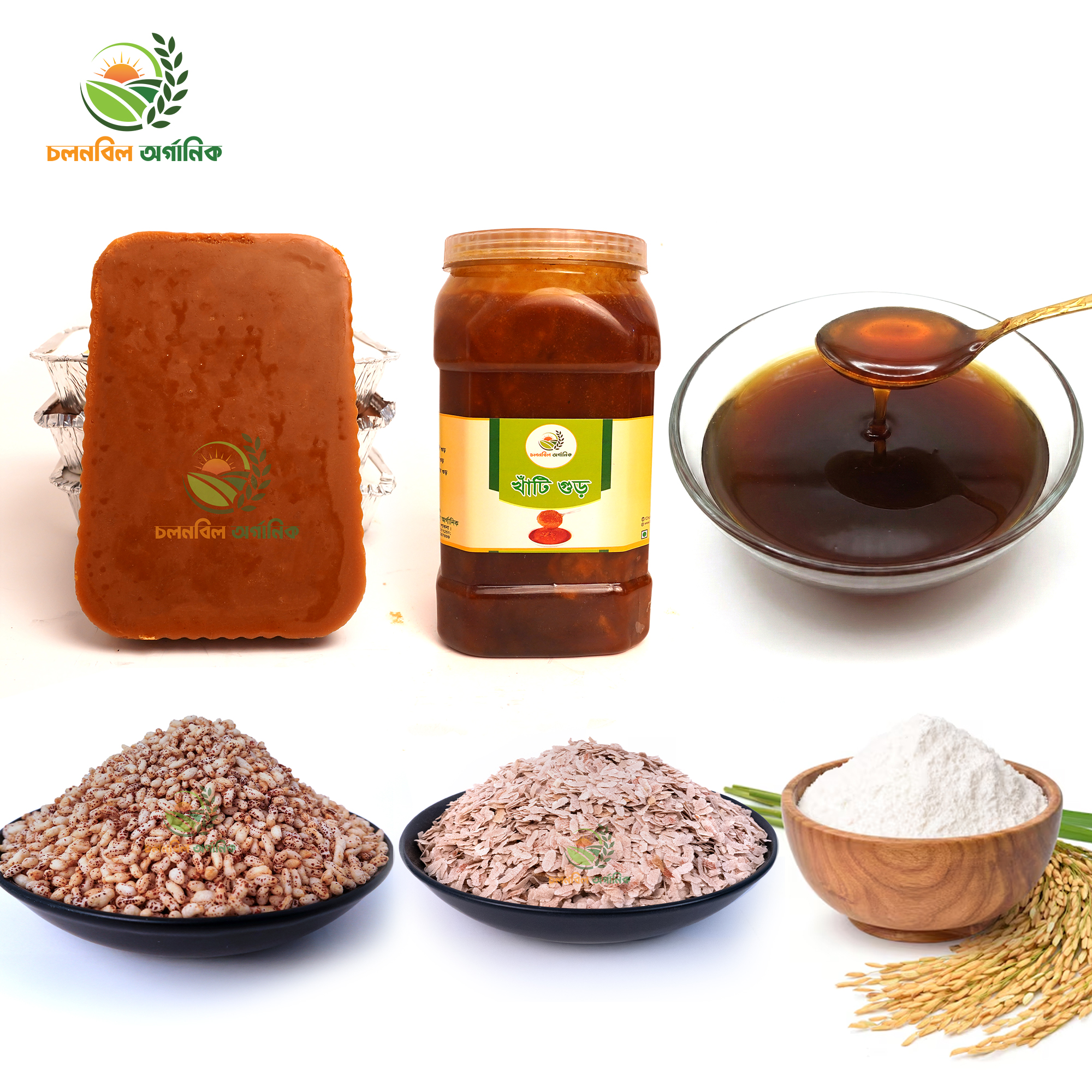 মিঠাই কম্বো ( ১ কেজি পাটালি + ১ কেজি দানাদার+ ১ কেজি ঝোলা গুড় + হাফ কেজি লাল মুড়ি + হাফ কেজি লাল চিড়া + ১ কেজি ঢেকিছাটা চাউলের গুঁড়ো)